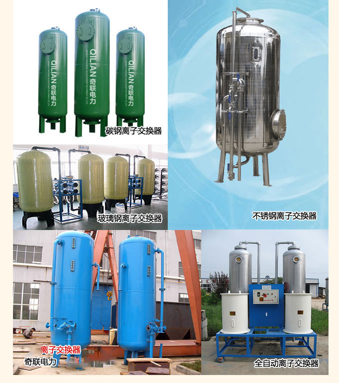 動(dòng)軟化器即為鈉離子交換器,離子交換器分為:鈉離子交換器、陰陽床、混合床等種類,。離子交換柱(器)外殼一般采用硬聚氯乙烯(PVC)、硬聚氯乙烯復(fù)合玻璃鋼(PVC-FRP)、有機(jī)玻璃(PMMA)、有機(jī)玻璃復(fù)合透明玻璃鋼(PMMA-FRP)、鋼襯膠(JR)、不銹鋼襯膠等材質(zhì)。主要用于鍋爐、熱電站、化工、輕工、紡織、醫(yī)藥、生物、電子、原子能及純水處理的前道處理,工業(yè) 所需進(jìn)行硬水軟化、去離子水制備的場合,還可用于食品藥物的脫色提純,貴重金屬、化工原料的回收,電鍍廢水的處理等。 混床是將陰陽離子交換樹脂按一定混合比例裝填在同一個(gè)離子交換器內(nèi),由于混合離子交換后進(jìn)入水中的H離子與OH離子立即生成電離度很低的水分子,可以使交換反應(yīng)進(jìn)行得十分;齑惨话阍O(shè)置于一級(jí)復(fù)床之后,對(duì)水質(zhì)的進(jìn)一步純化處理。當(dāng)水質(zhì)要求不高時(shí),也可以單獨(dú)使用。