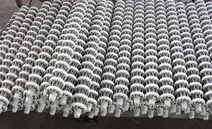 其結構是將加熱元件的電阻絲(帶)彎成“U”形串入多塊絕緣耐高溫的陶瓷支撐盤中,中間用一根耐熱棒固定,這種輻射管壽命較長。